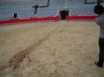 なんでも最近は闘牛には動物愛護団体から風当たりが強くて特にここBarcelonaでは盛り上がりに欠けるそうなんだけど、ちょうど前日の日曜日に開催されていたらしく、よく見ると。。。