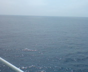 デッキにいると、「今、海に落っこったらあっという間にこの広い海に一人ぼっちになるんだなあ〜〜。。。ひえ〜!こ、怖いよお〜〜!」