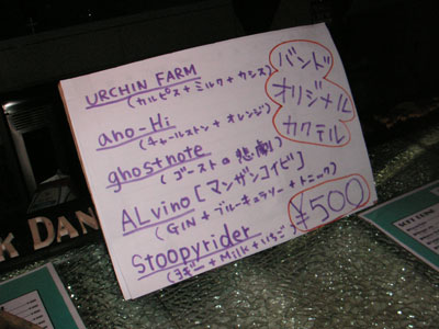 出演バンドのオリジナルカクテルを売ってるらしい。