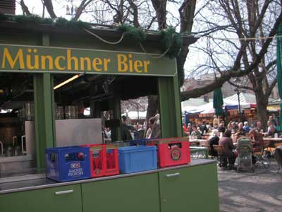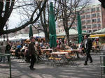 こういうの、「世界の車窓から」とかでよく見るぞ〜。広場にソーセージやらパンやらお菓子やらのお店がいっぱい並んでて(店というより屋台に近いかも)好きなもんを買ってビールを買って勝手に座って飲み食いするスタイル。春のポカポカ陽気も相まってとっても気持ちがいい。勿論わたくしも。。。