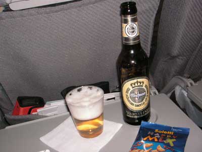 一杯ひっかけて機上の人に。。。帰りの便を除けばこの旅最後の飛行機移動です。と言っても飛行機で移動するのはあくまでフランクフルトまで。そこから翌日の公演地ザールブリュッケンまではいよいよバスの旅の始まりとなりました。この先はバスが僕らの家になります。そこで。。。