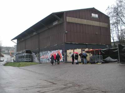 3連チャン3日目。この日も朝6時集合。小屋はホテルのすぐ裏。小屋のまわりには女の子達の長蛇の列が。。。なんでも2日前くらいから並んでる娘もいたとか!(ちなみに前日はここでGOOD SHARLOTTEがやってたらしいだけどウチらの方が凄かったとは地元の人のハナシ)なんかフィンランド凄い!