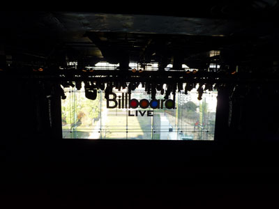 写真はリハ中だったのでまだお昼なんですが本番中に開けると夜景や(ちょうどクリスマス時期だったから)イルミネーションがステージ裏に広がるというなかなか洒落たことになるわけです。残念ながら本番中はちょっと写真を撮る余裕がなかったんだけどね。
