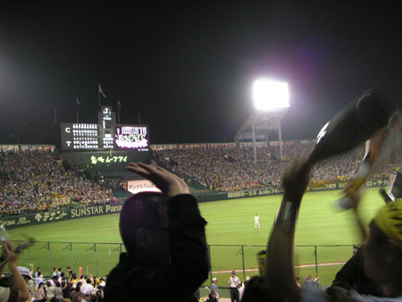 わたくし、小学生以来の阪神ファンですが今まで球場で生で見た試合は一度も阪神が勝った事がありませんでしたので初めて勝った試合を生で見ました (笑) 途中、広島の攻撃中に喫煙所でタバコを吸ってたら熱狂的阪神ファン (超よっぱらいオヤジ) につかまって話し込まれ若干閉口しましたが (笑) それもまた楽しかったですね。