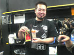 ここFLEEZはたぶん一年ぶりくらいに来たんですけど、名物 (?) 「楽屋カレー」のあたりがちょっとリニューアルしてました。ちなみに今回も「楽屋カレー」は食べず。。。しかし開場前に食った近所の中華屋のもやしそばはあまりにもやしのボリュームがありすぎて正直食べきれなかったので、むしろ「楽屋カレー」にしとくべきだったのかも。。。本番前に楽屋に行くとマネージャー君が不思議な食べものを食っていた。。。