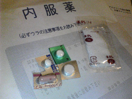 ただ、どうも風邪くらいで医者に行くってのにちょっと抵抗があったりもして、待合室でもなるべく「重い病気」ぽくふるまっちゃったりして (笑) 「あらかじめ熱を計って下さい」とか言われて待合室で体温計を渡されたんだけど、実は今回熱は無かったのね。看護士さんに「なんだ、熱とかねえじゃん」とか思われるんじゃないかと不安になったり (笑) お医者さんの診察をうけて「あー大分のどが腫れてますねえ」とか言われて何故かホッとしたり (笑) バカですね。