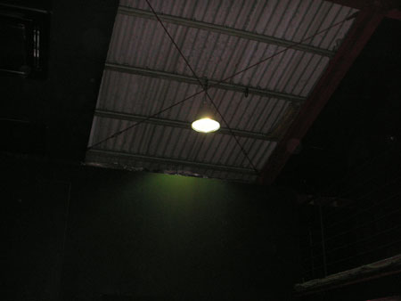これは真夏だったらたまらんでしょうなあ。真冬は逆に超寒そう。。。しかもちょっと隙間が空いてたりして、この日は昼間にちょっと雨が降ったんですが会場内にちょっと吹き込んだりして (笑) う〜ん、けっこうな小屋でした。